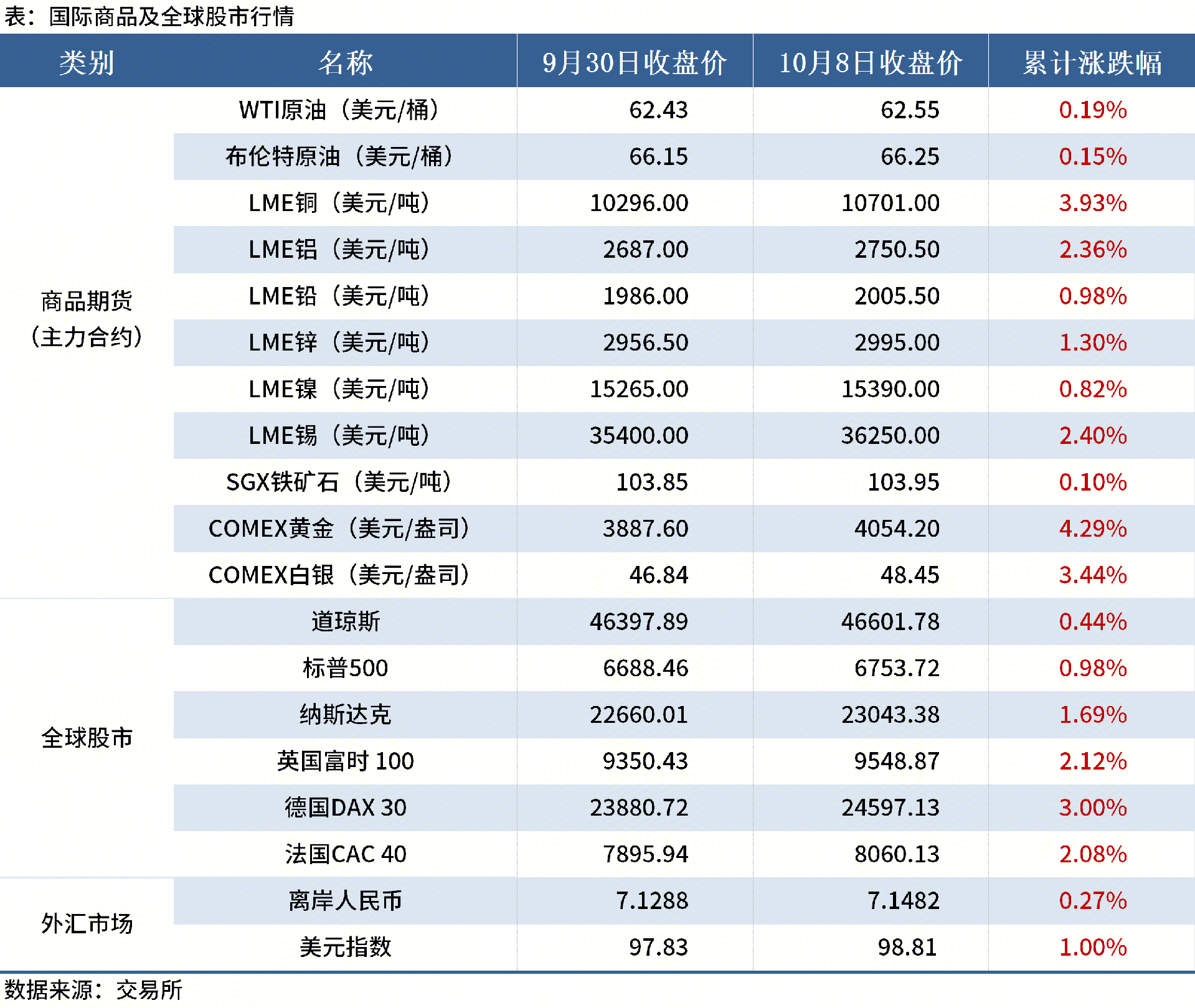 (2)建筑钢材:国庆期间现货市场价格基本平稳,同时节前备货情绪不足,市场对于节后价格看涨预期较弱。若节后需求恢复情况不及预期,在节后累库持续下,供需错配情况或难出现。预计节后现货市场或震荡运行为主。详情>>