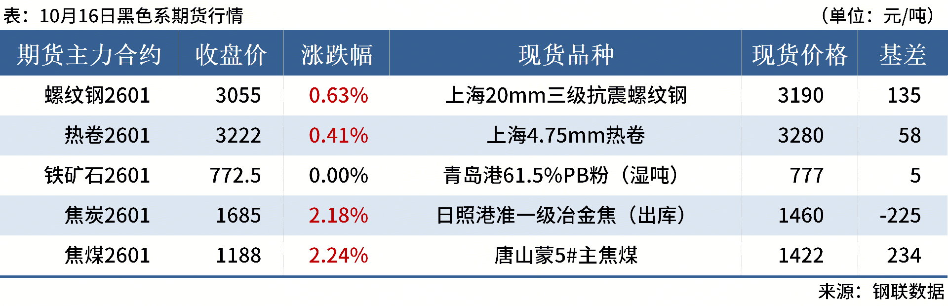 ◎ 10月16日,全国主港铁矿石成交120.70万吨,环比减3%;237家主流贸易商建筑钢材成交10.18万吨,环比增11.4%。