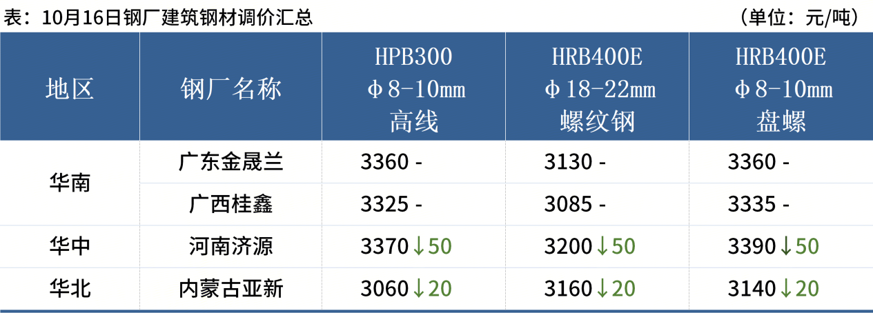◎ 10月16日,广东中南钢铁股份有限公司、阳春新钢铁有限责任公司、珠海粤裕丰钢铁有限公司发布关于限价销售的通知。详情>>