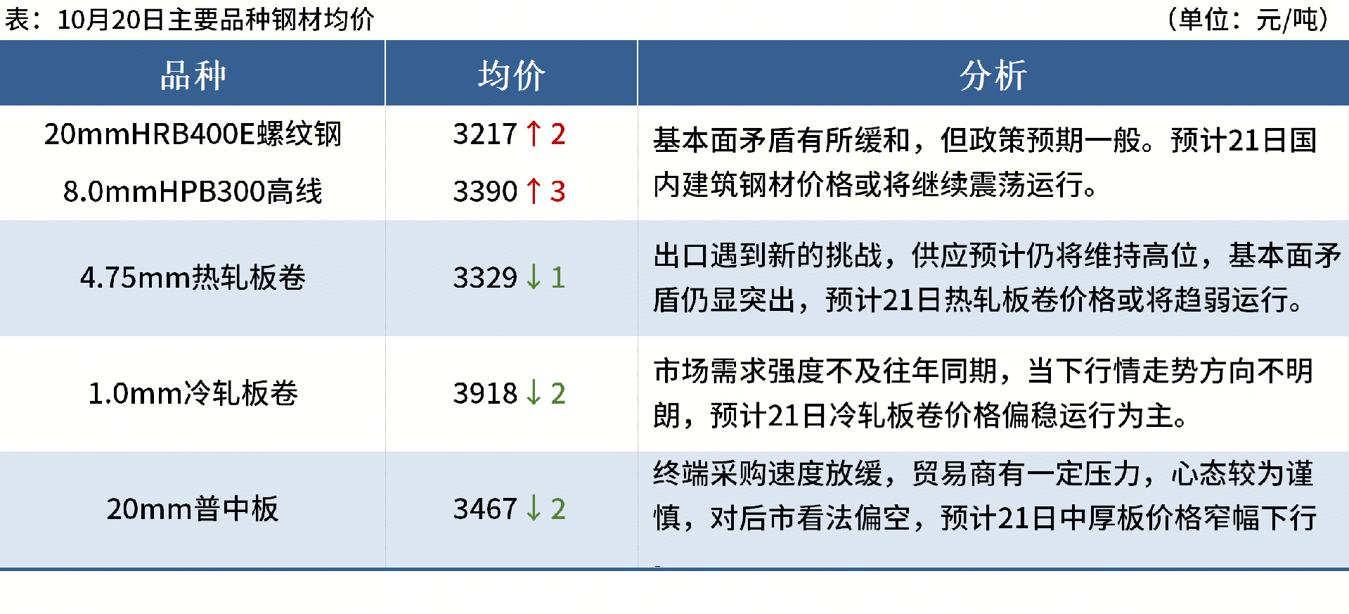◎10月20日,中天钢铁出台10月下旬价格,螺纹下调50元/吨,线材盘螺下调50元/吨。现华东螺纹3350元/吨,线材盘螺3550元/吨。