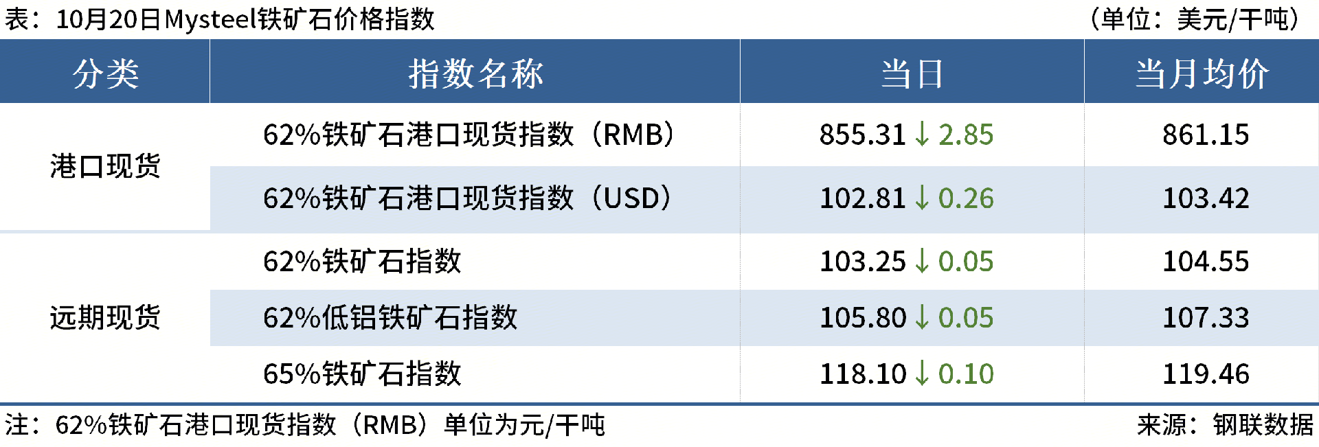 ◎10月13日-19日,全球铁矿石发运总量3333.5万吨,环比增加126.0万吨。澳洲巴西铁矿发运总量2825.0万吨,环比增加94.0万吨。