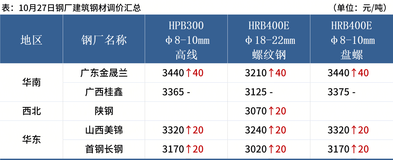 ◎ 焦炭第二轮提涨全面落地,山东、河北主流钢厂发函对焦炭采购价上调,湿熄涨幅50元/吨,干熄涨幅55元/吨,10月27日0时起执行。