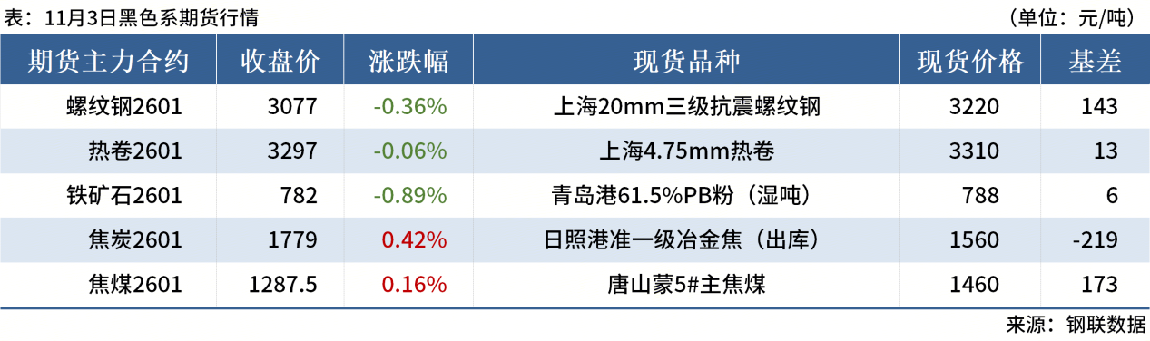 ◎11月3日,全国主港铁矿石成交129.30万吨,环比增62.4%;237家主流贸易商建筑钢材成交9.80万吨,环比增9%。