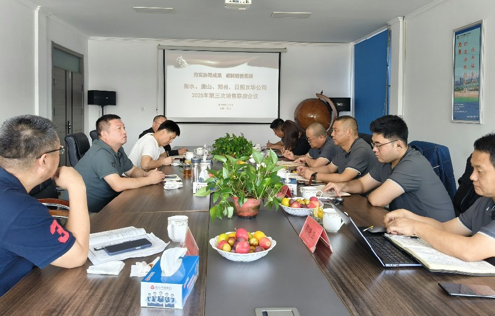 为总结“增协同、反内卷”协同机制成果,共商下一阶段协同工作。9月20日,衡水、唐山、郑州、日照京华公司召开2025年第三次联席会议。衡水京华总经理温朝福、供销副总韩文涛,唐山京华常务副总胡武、郑州京华总经理马银鹏、日照京华总经理侯增合及各公司销售领导出席本次会议。 本次会议复盘了协同机制运行成果,参会人员共同分析当前市···